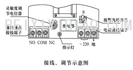 控制器出厂时,控制器的控制状态都设定在A状态,若需要使用下限报警,则必须将控制器内的妞子开关拨到B位置,见接线调节示意图。