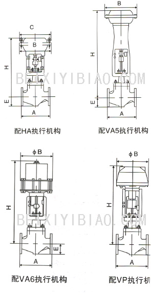 备注:该阀也可配用VA5和VP执行机构
