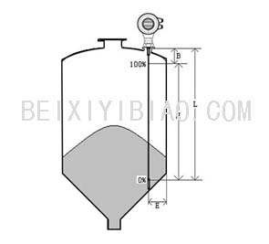 注意:只有物料处于顶部盲区和底部盲区之间时,才能保证罐内物位的可靠测量。